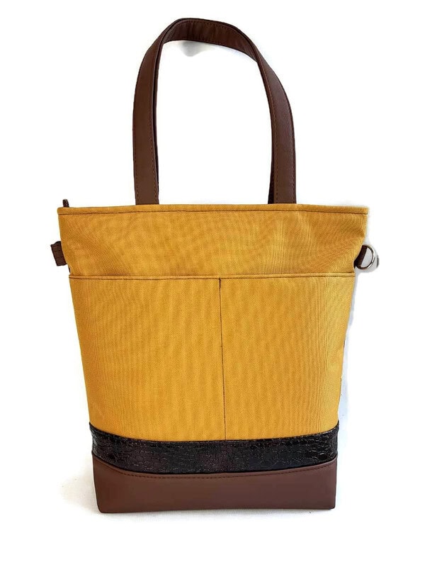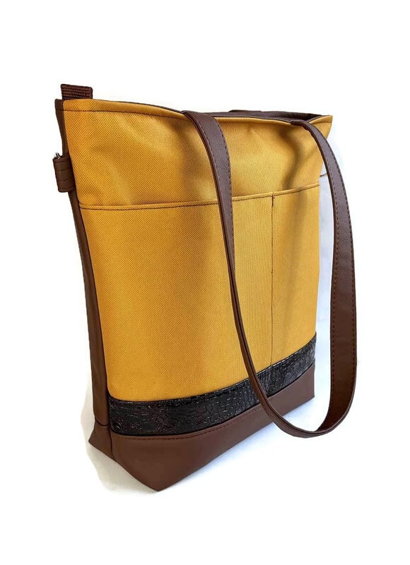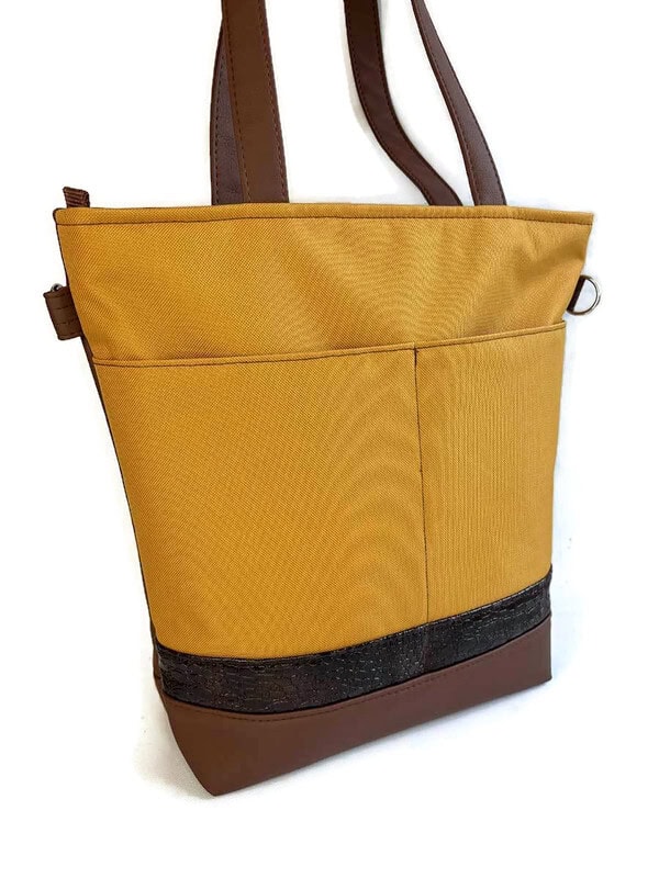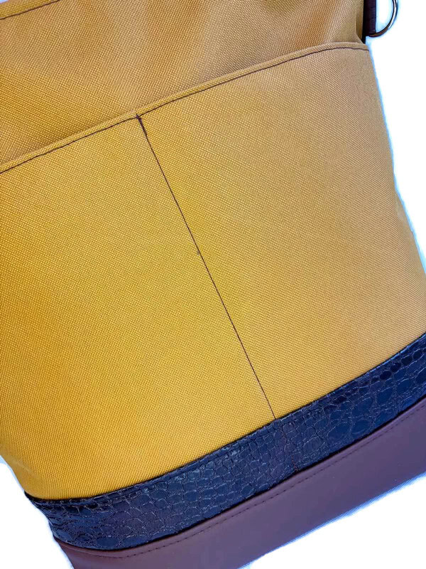 Alapanyag: Rozsda szín textilbőr, mustár színű kordura agyag